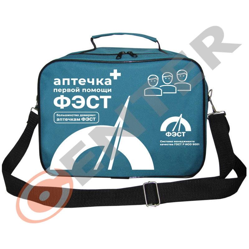 Аптечка Фэст предназначена для оказания первой помощи работникам при травмах и чрезвычайных ситуациях на предприятиях. Она разработана в соответствии с приказом Министерства здравоохранения РФ № 262н. Аптечка помещена в текстильную сумку с размерами 280×225×130 мм и весом 1200 г.