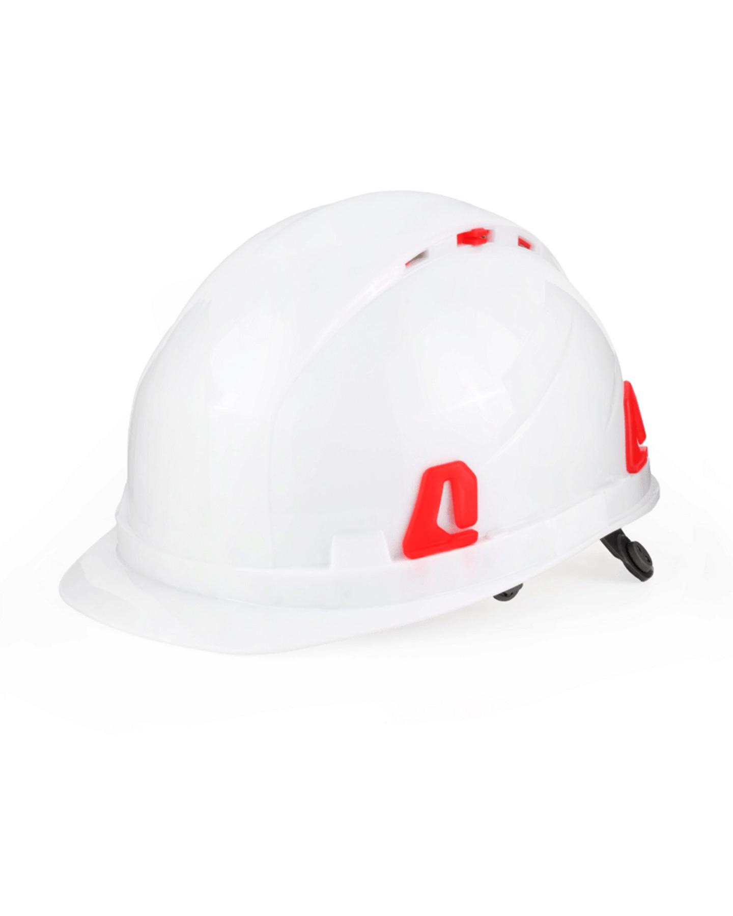 Пазы в корпусе каски для совместного ношения с защитными лицевыми щитками с креплением на каске и наушниками противошумными с креплением на каске.